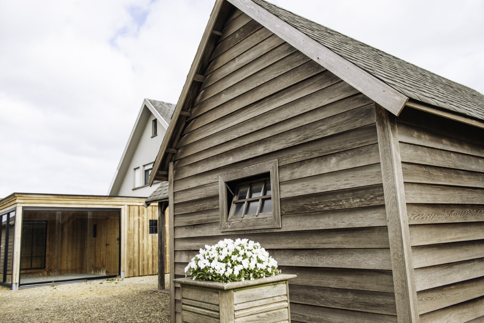 Gemaakt uit robuuste houtsoorten zoals lariks of eik, afgewerkt met klassieke details zoals sierlijsten, dakoverstekken of smeedijzeren accenten.